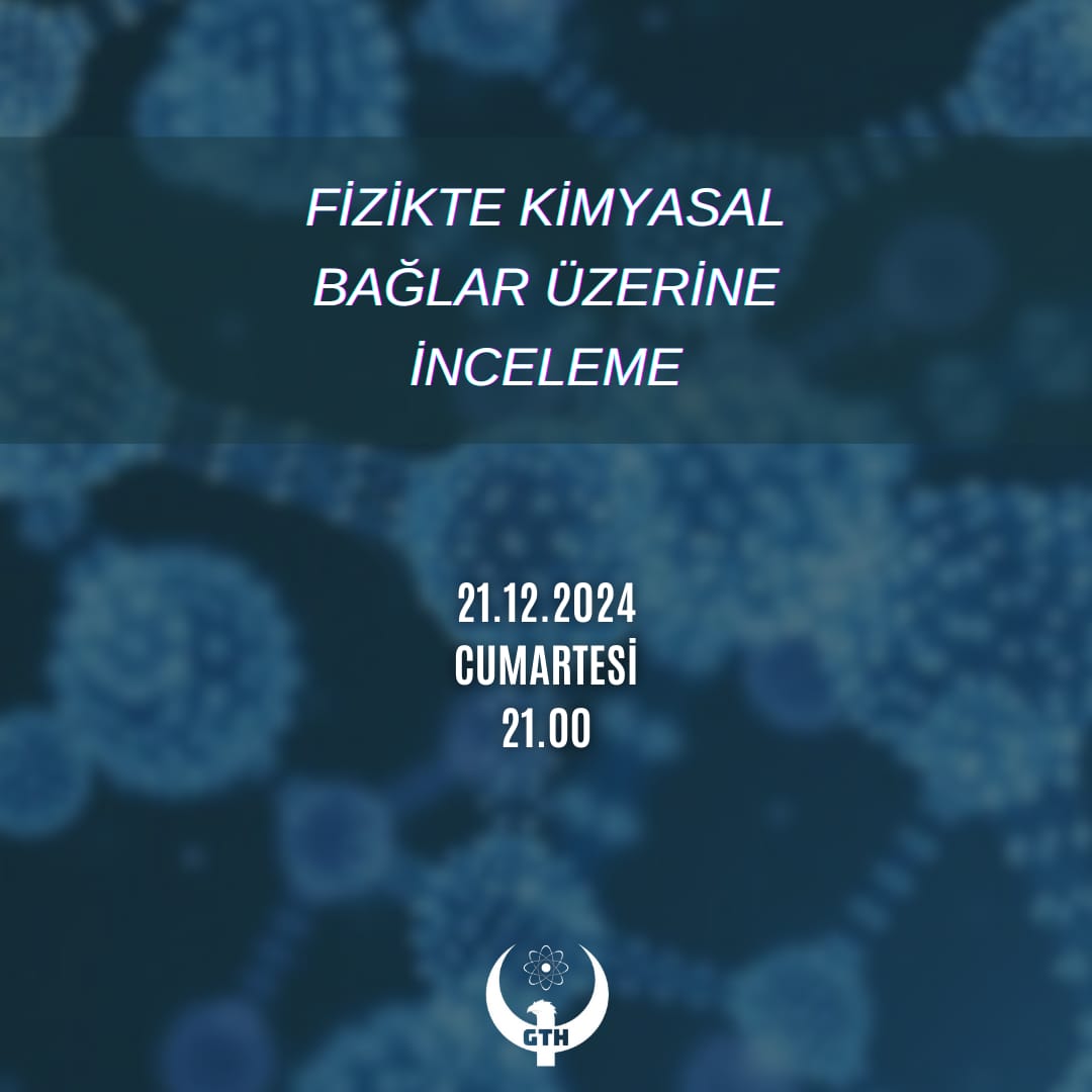 Genç Türkler Hareketi Fizik Yarkurulu olarak 21 Aralık Cumartesi saat 21.00’da “Fizikte Kimyasal Bağlar Üzerine İnceleme” başlıklı s...